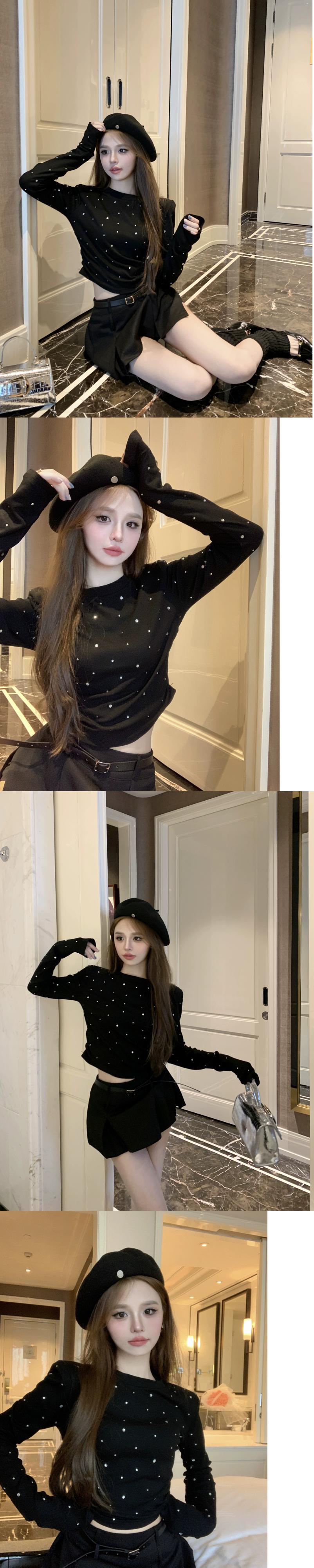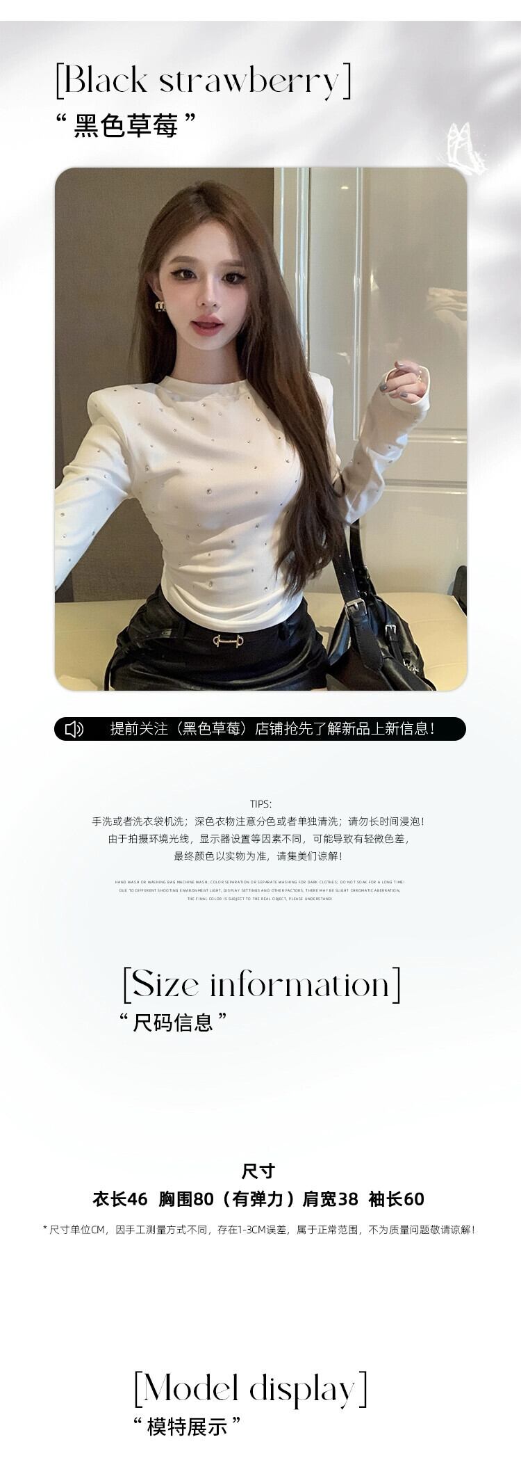 重工業ダイヤモンド長袖ショルダーパッドラウンドネック Tシャツ女性春スリムショートトップ白インナーレイヤリングシャツ ロング ホワイト スプリング 春物 Oネック berry47355567721 | beaute25