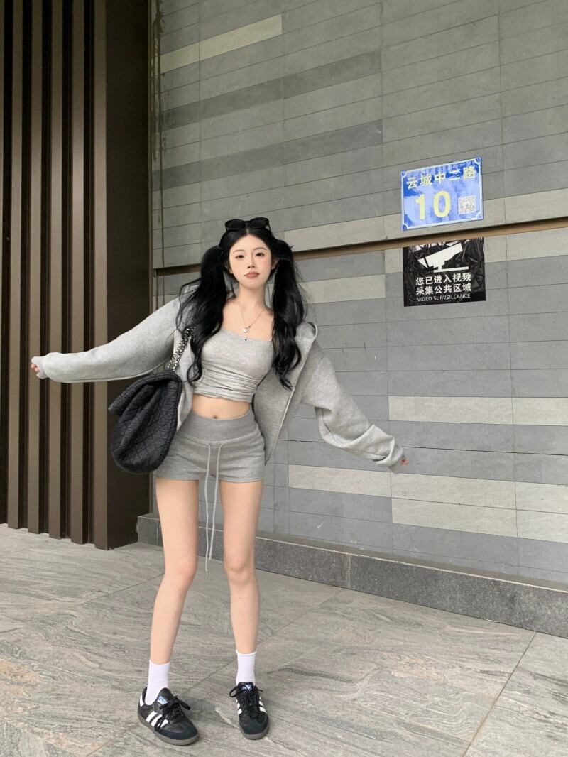 色:グレーコート,黒いジャケット,グレーのショートパンツ,黒のショートパンツ