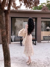 白いストラップ長袖スクエアネックレースドレス女性春のセクシーな純粋な欲望スタイルタイトフィットフィッシュテールロングスカート ホワイト スプリング 春物 ピュア スクウェア berry20187166714 | beaute25