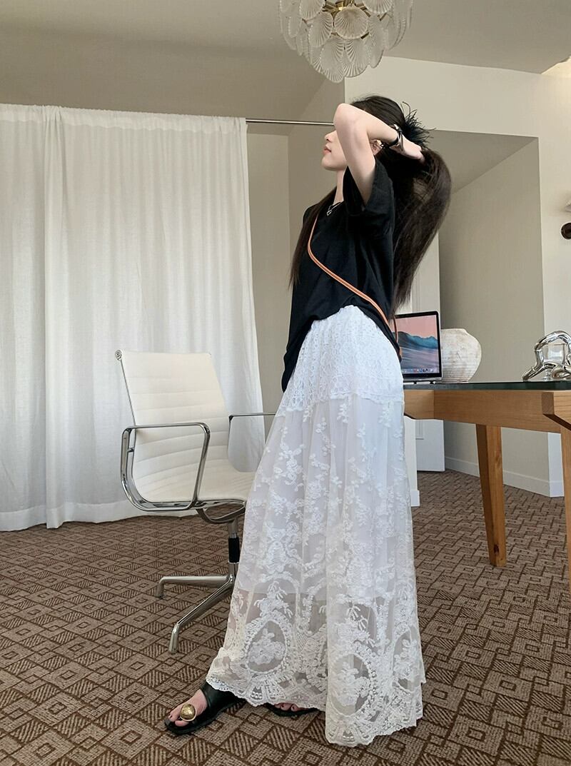 白いレースのスカートの女性の春 2024 新しいミッドレングス a ラインスカートハイウエスト痩身大スイングスカート傘スカート ハイウェスト ホワイト スプリング 春物 Aライン berry6439213643 | beaute25