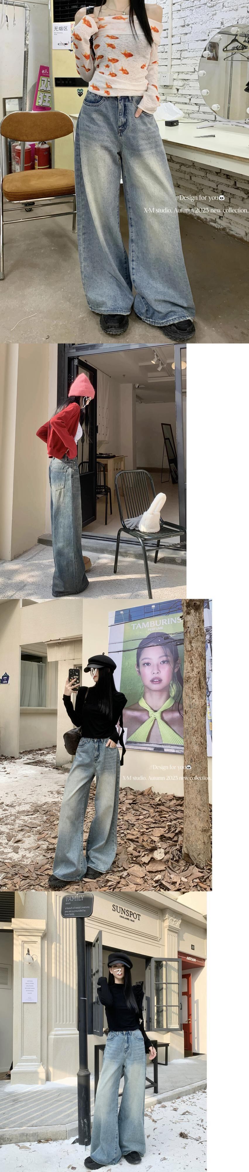 ブルー ワイドレッグ ジーンズ レディース 春レトロ ルーズ スリミング ローウエスト ストレート パンツ ドレープ床長ズボン スプリング 春物 berry93726378115 | beaute25