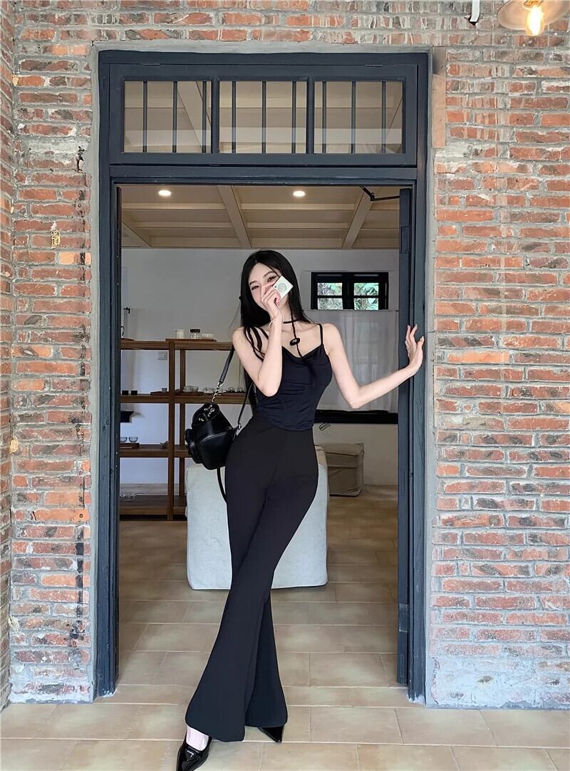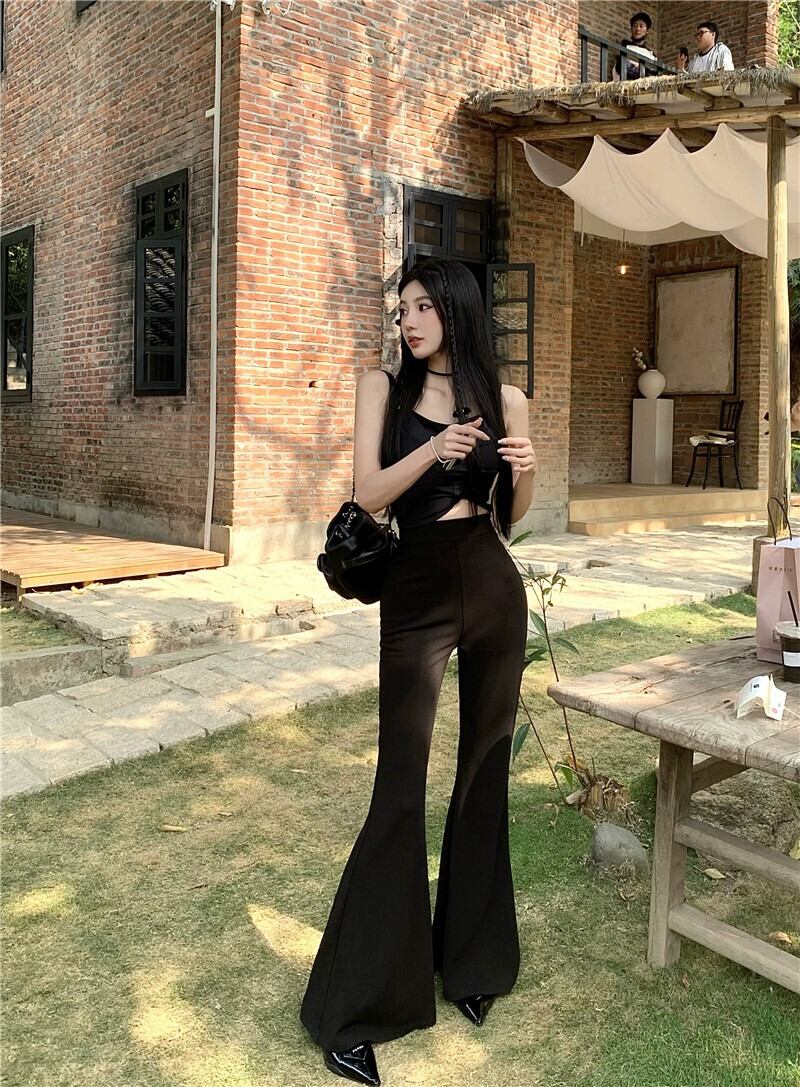 ブラックカジュアルパンツレディース、夏用マイクロフレアフロアレングスパンツ、Sサイズ、薄手、ハイウエスト、スリムフィット、ワイドレッグパンツ レッド サマー 夏物 berry75534524464 | beaute25