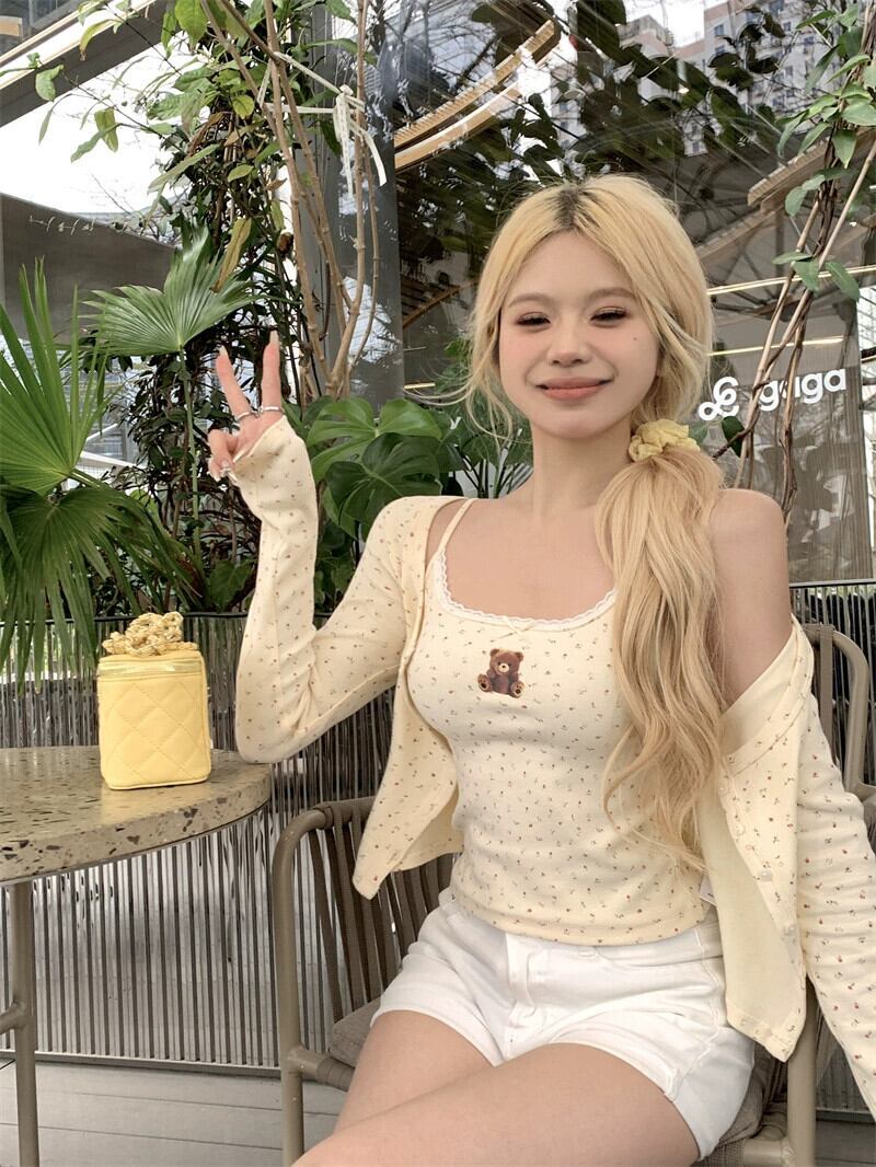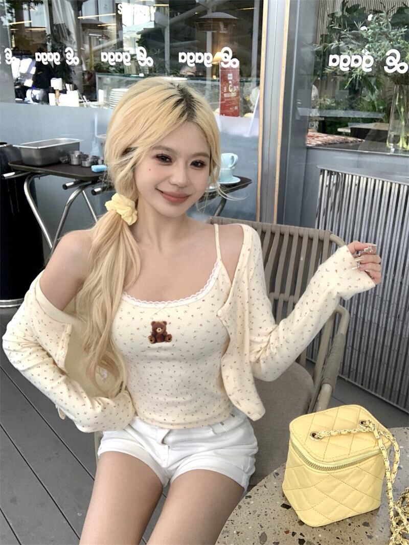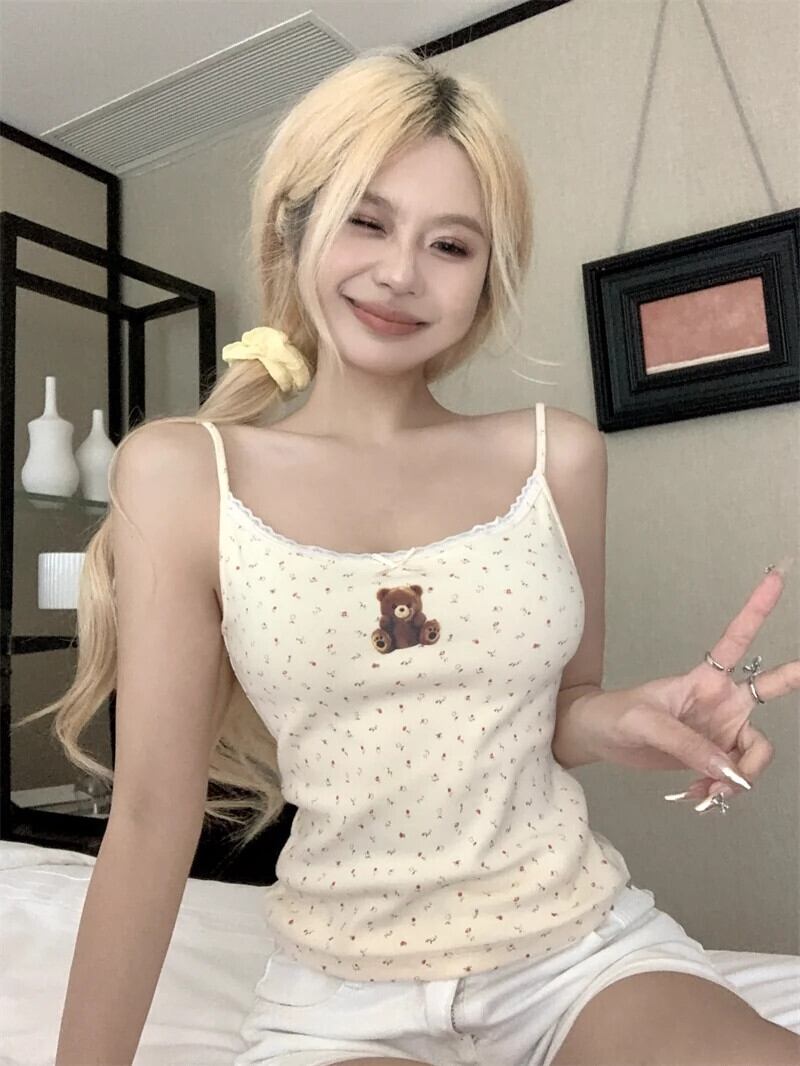 かわいいクマプリントキャミソール女性の夏のレースのインナーウェアショート甘い花柄トップ 大人ガーリー スウィート キュート カジュアル サマー 夏物 berry86305204123 | beaute25