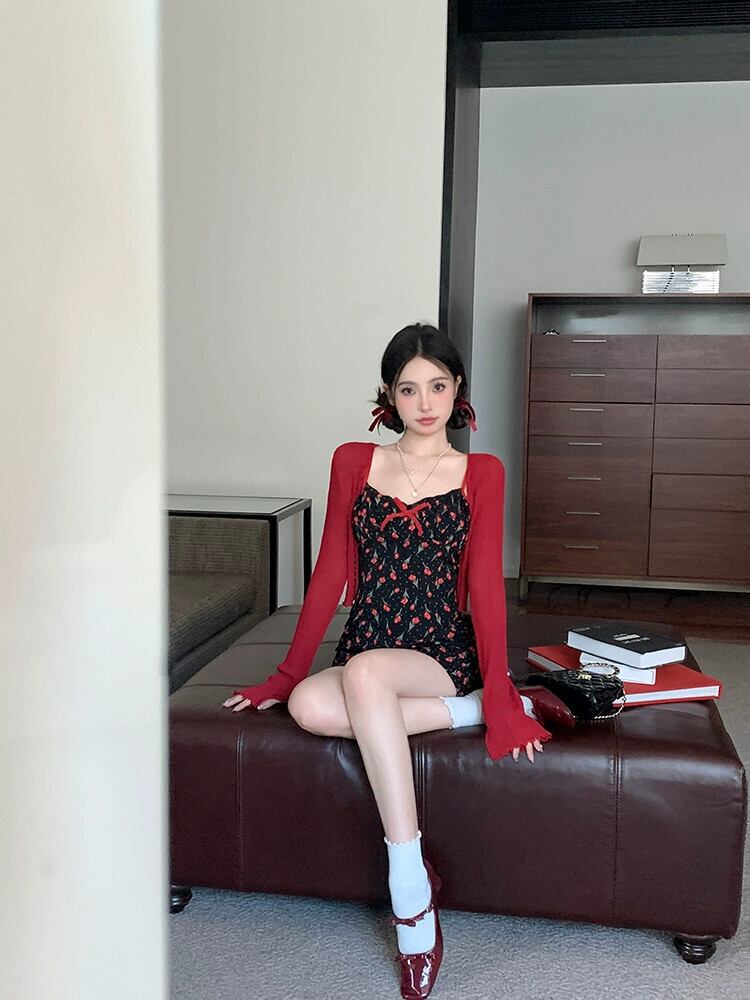 弓花サスペンダードレスの女性、夏の気質、セクシーな甘いスカート、スリムなウエストとヒップスカート 大人ガーリー スウィート キュート カジュアル サマー 夏物 花柄 berry72879774085 | beaute25