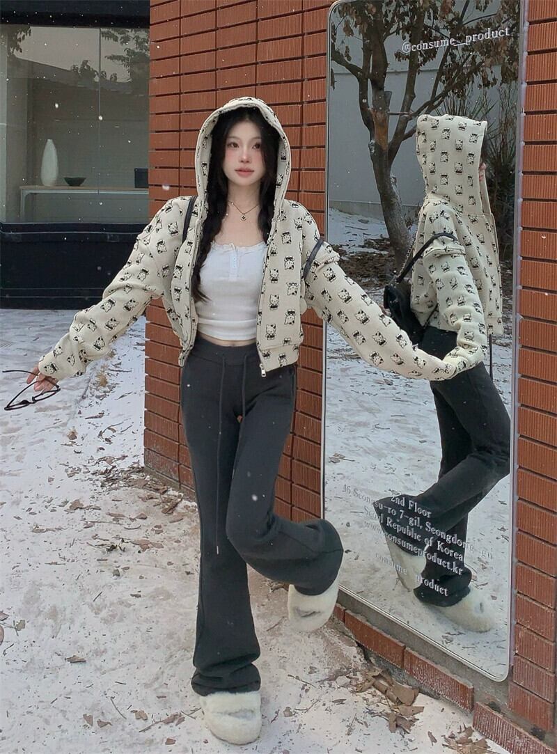 甘くてかわいい猫プリントスウェットシャツカーディガン女性初春長袖ルーズコート怠惰なスタイルのジッパーフード付きトップ ロング 大人ガーリー スウィート キュート カジュアル スプリング 春物 berry17718693160 | beaute25