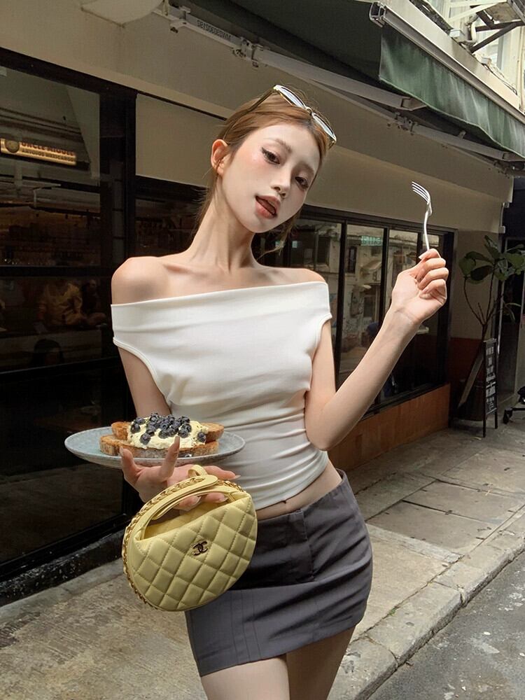 ワンショルダーバックレスレースアップ半袖Tシャツ女性夏スリムフィット白弾性ショートスリミングボトリングトップ ホワイト エラスティック 伸縮 サマー 夏物 berry96098441592 | beaute25