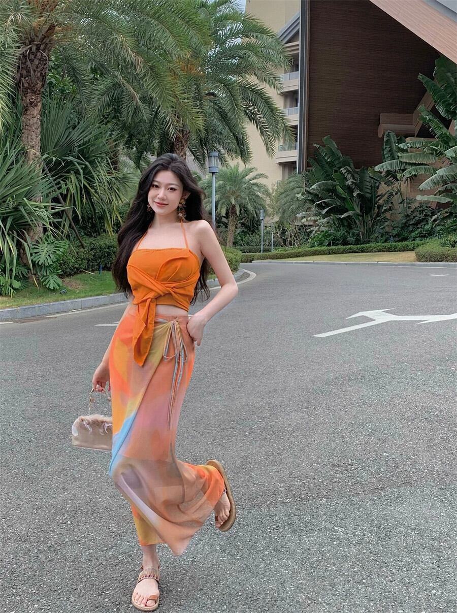 オレンジのホルターネック サスペンダー女性の夏デザイン ニッチ セクシーな純粋な欲望のベスト スリム ショート ノースリーブ トップ 半袖 ハーフスリーブ サマー 夏物 ピュア berry70634864277 | beaute25