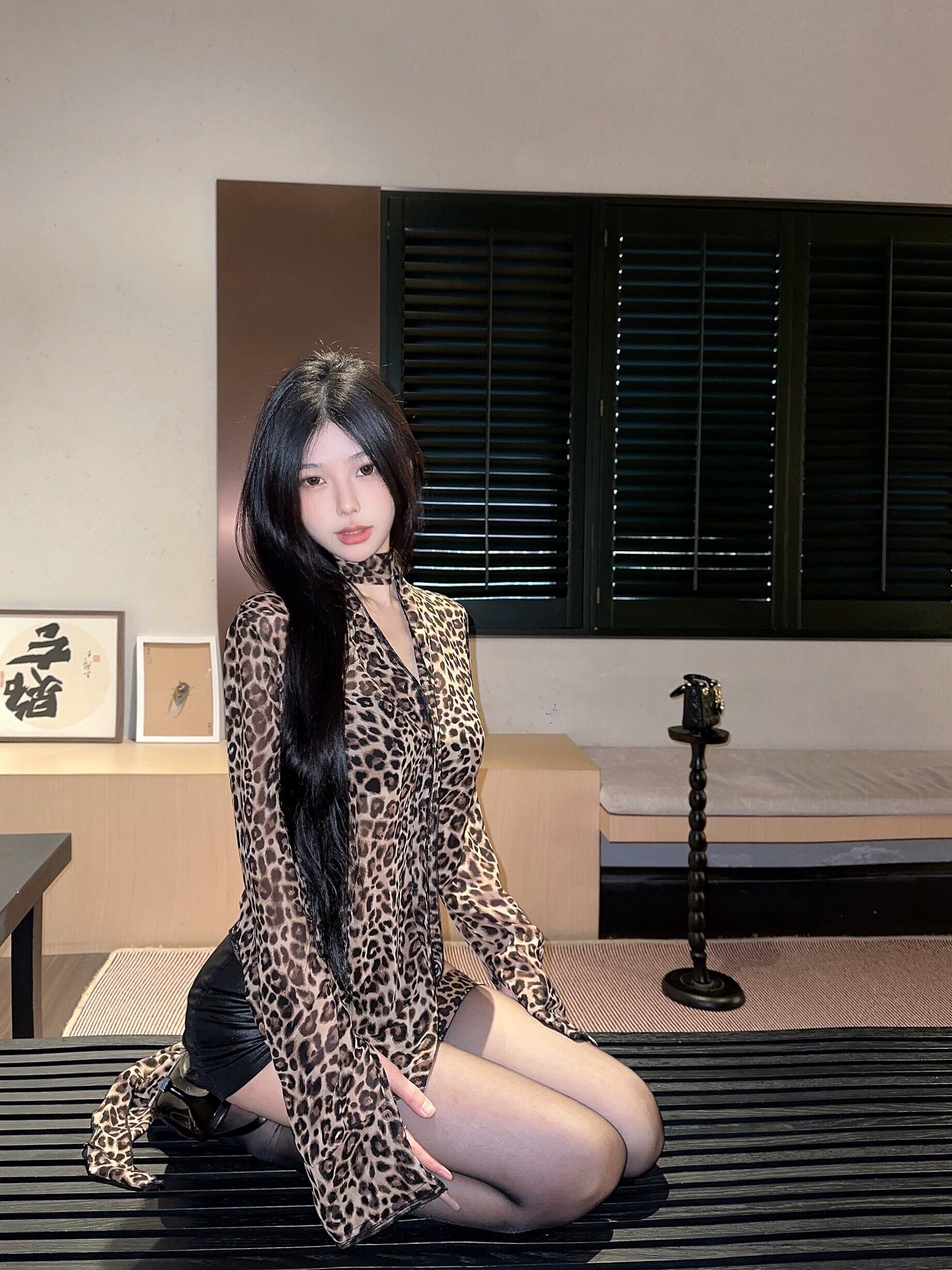 色:ヒョウ柄トップ,ヒョウのストッキング