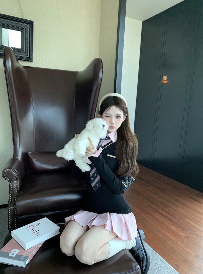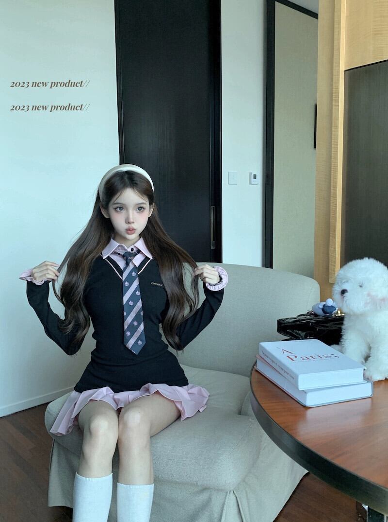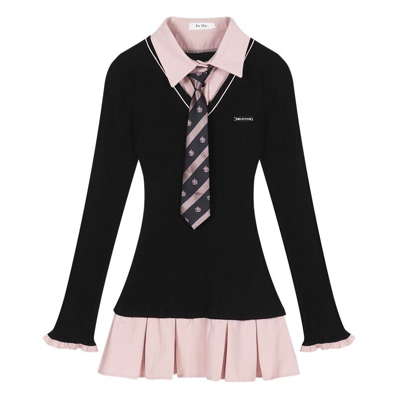 フェイクツーピースコントラストカラードレス女性春の新作ウエストスカート甘いカレッジスタイルプリーツスカート A ラインショートスカート 大人ガーリー スウィート キュート カジュアル スプリング 春物 Aライン berry7164582875 | beaute25