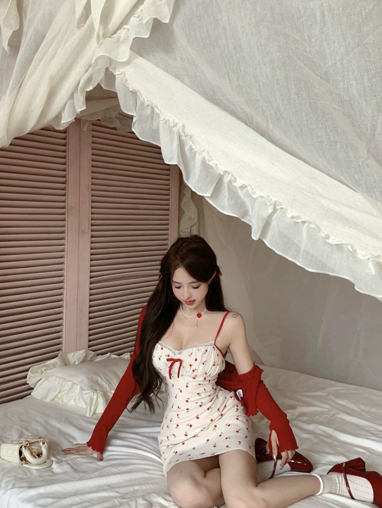 色:赤いカーディガン,スカート