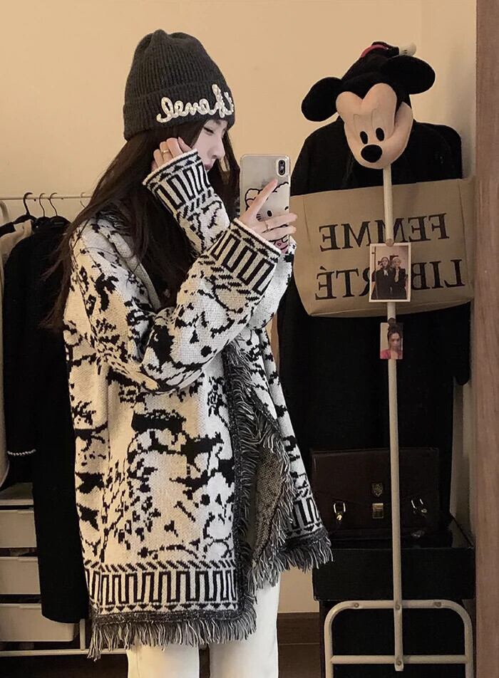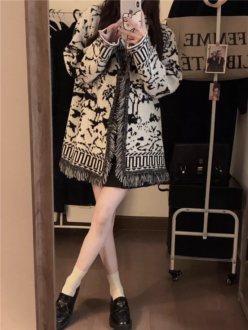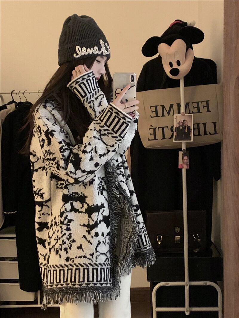 - エンドジャカードフリンジセータージャケットレディース、春と秋のデザイン、スタイルルーズで怠惰なスタイルのニットカーディガントップ スプリング 春物 オータム 秋物 berry33589542762 | beaute25