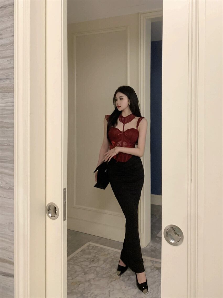 赤いレースのホルターネックキャミソール女性の夏サマーブラジャー胸パッド付きフィッシュボーンブラジャーセクシーなインナーウェアトップ レッド 夏物 berry90008154469 | beaute25