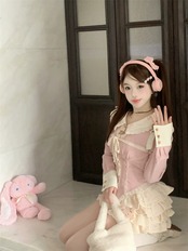 色:ピンクアプリコットシャツ,アプリコットケーキのスカートにはクマが付いています