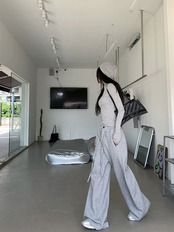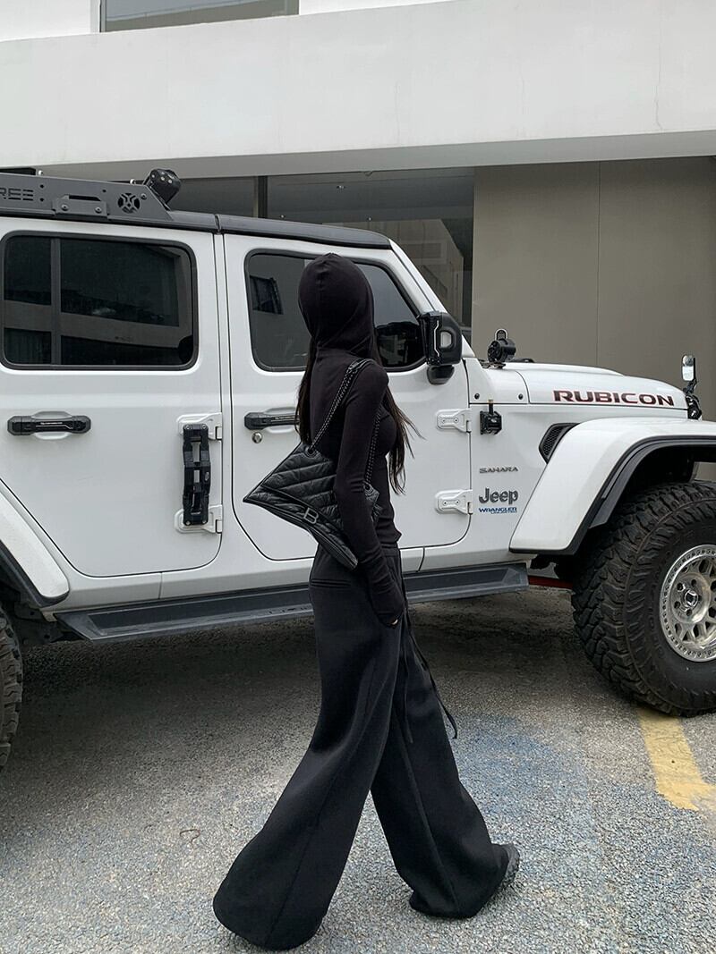 色:グレートップ,ブラックトップ,グレーパンツ,黒いズボン,灰色の厚いトップ,黒の厚いトップ