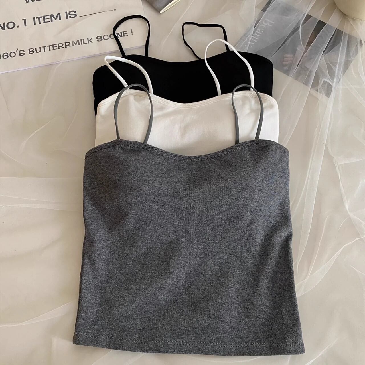 胸パッド付き純綿ワンピース白サスペンダートップ、春と夏の女性、タイトフィットインナーウェア、ショートボトミングベスト ホワイト コットン スプリング 春物 サマー 夏物 berry22453430783 | beaute25