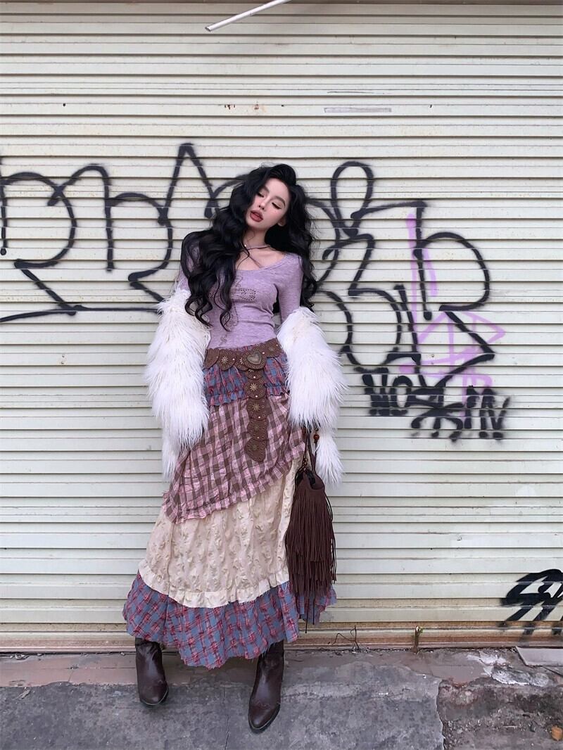ボヘミアンスタイルスカート レディース 春 カラフルチェック柄 アンブレラスカート パッチワークスカート ハイウエスト ミドル丈 Aラインスカート ハイウェスト スプリング 春物 berry59285738365 | beaute25