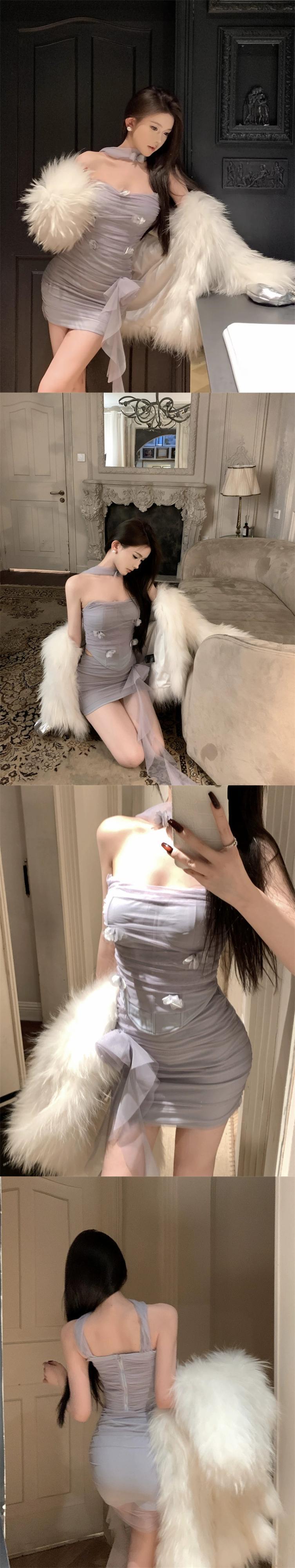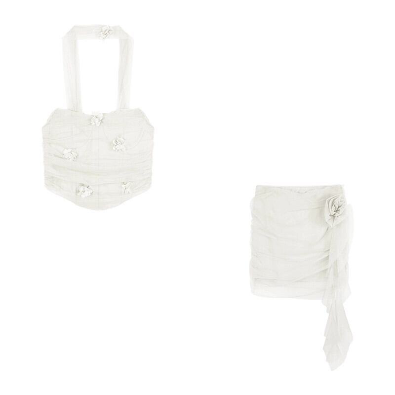 立体フラワーメッシュチューブトップ女性春純粋な欲望セクシーなスーツヒップカバーハーフレングスショートスカート2点セット スプリング 春物 ピュア フラワーデザイン berry49434118304 | beaute25