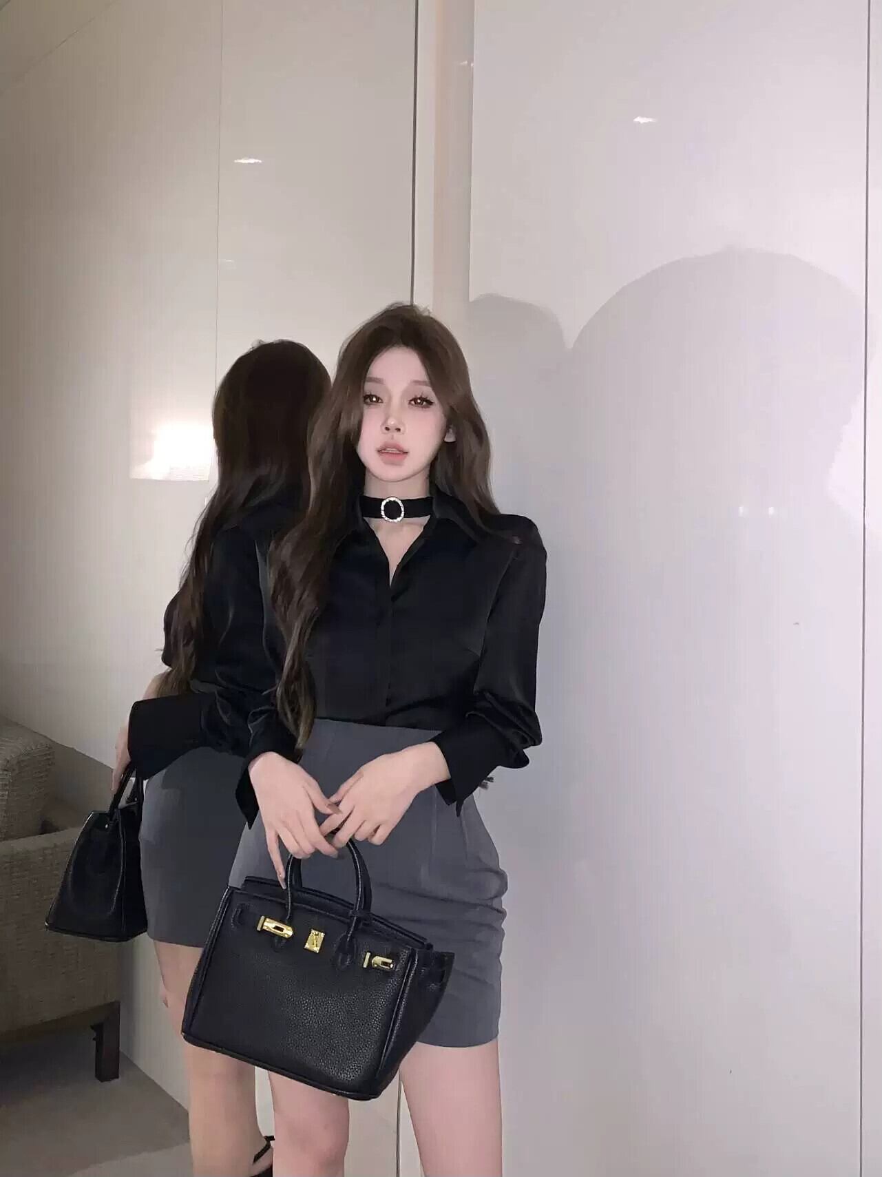 色:紫のシャツ,黒いシャツ,黒スカート,グレースカート