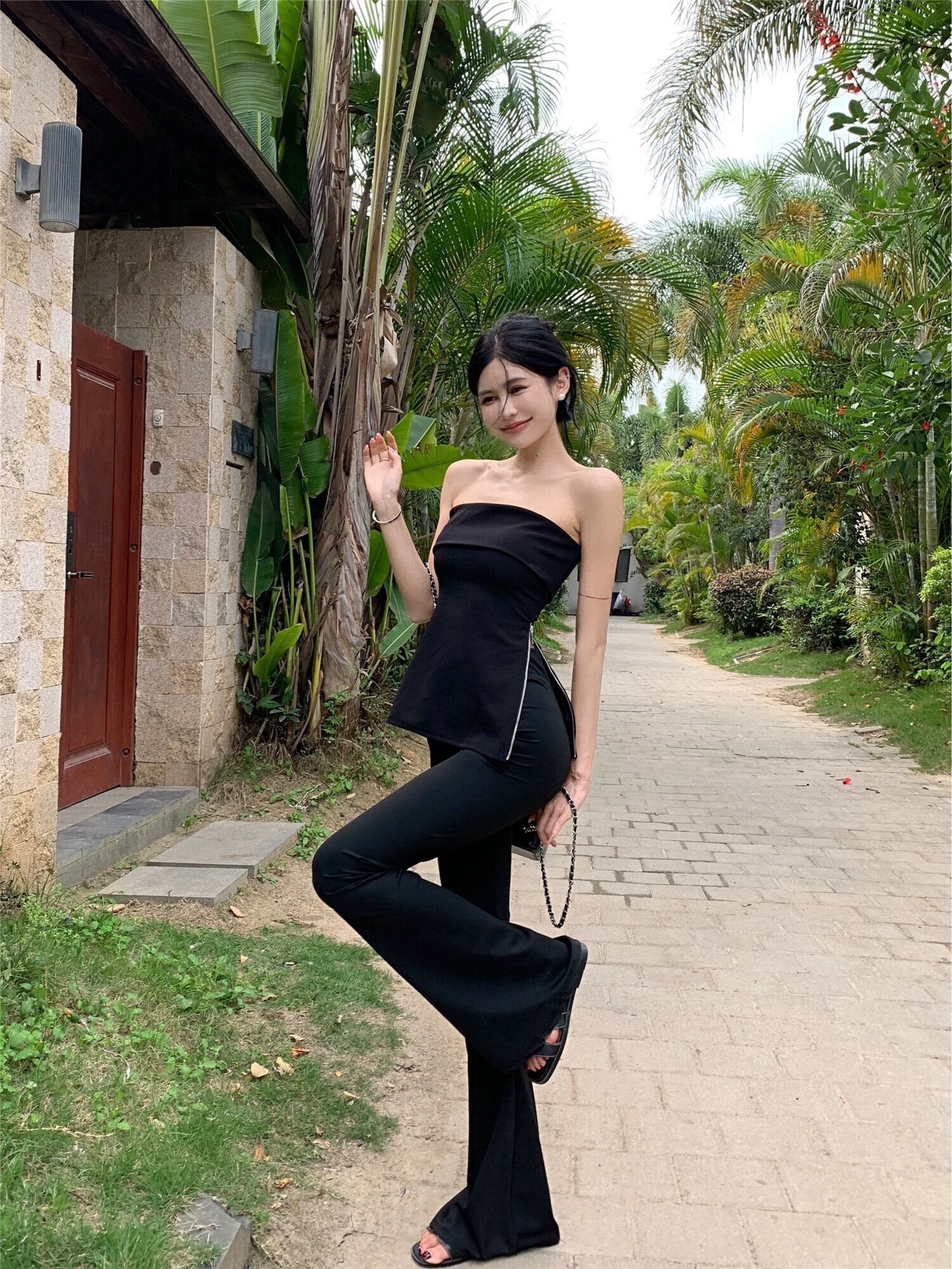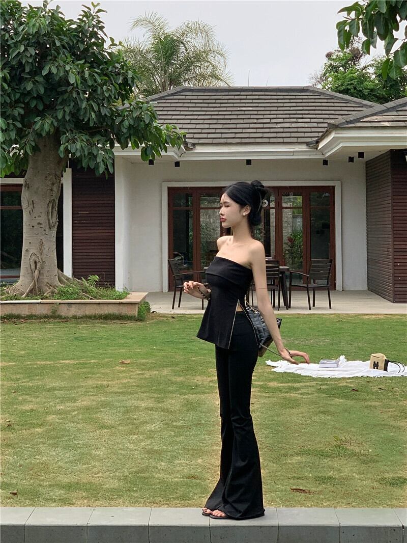 ホットセクシーなスーツチューブトップベスト女性夏ハイウエストスリムカジュアルパンツマイクロフレアパンツズボンツーピースセット ハイウェスト レッド サマー 夏物 berry2060208370 | beaute25
