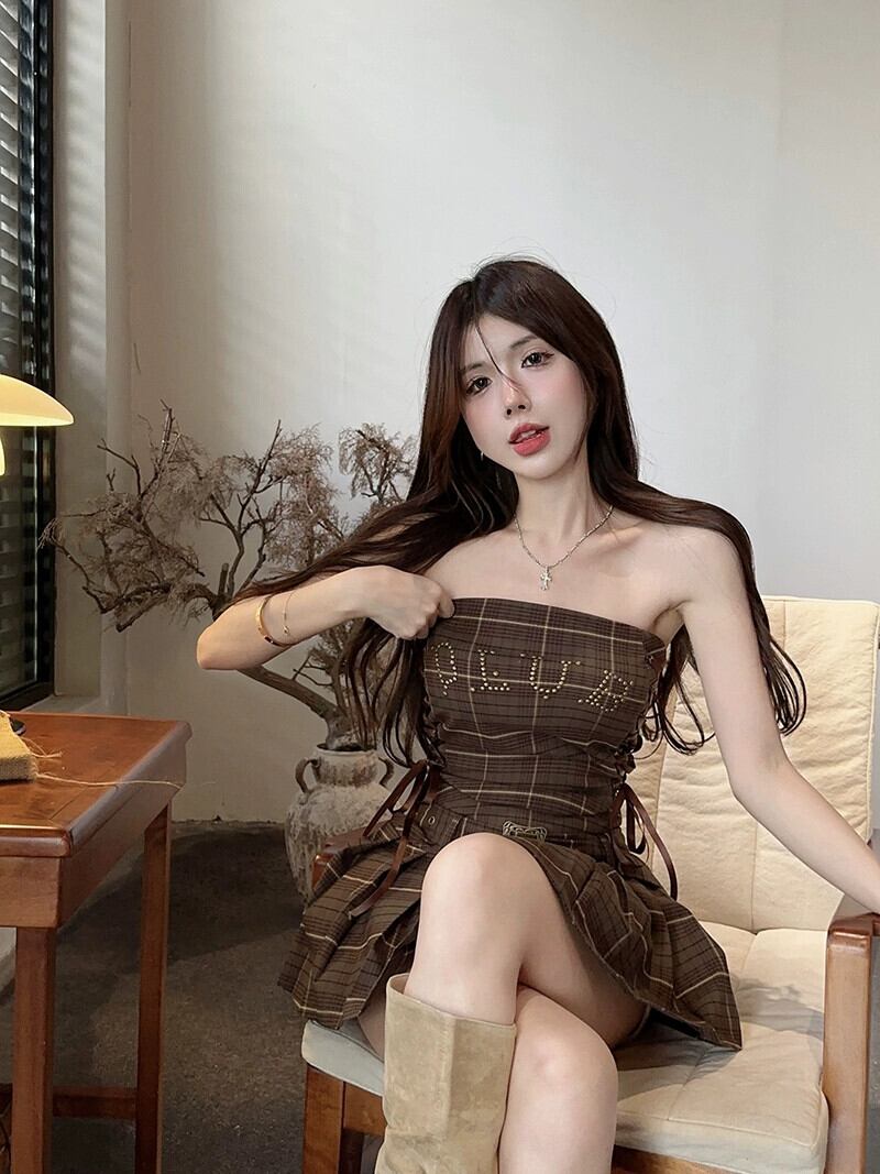 色:チェック柄チューブトップ,チェック柄スカート