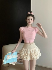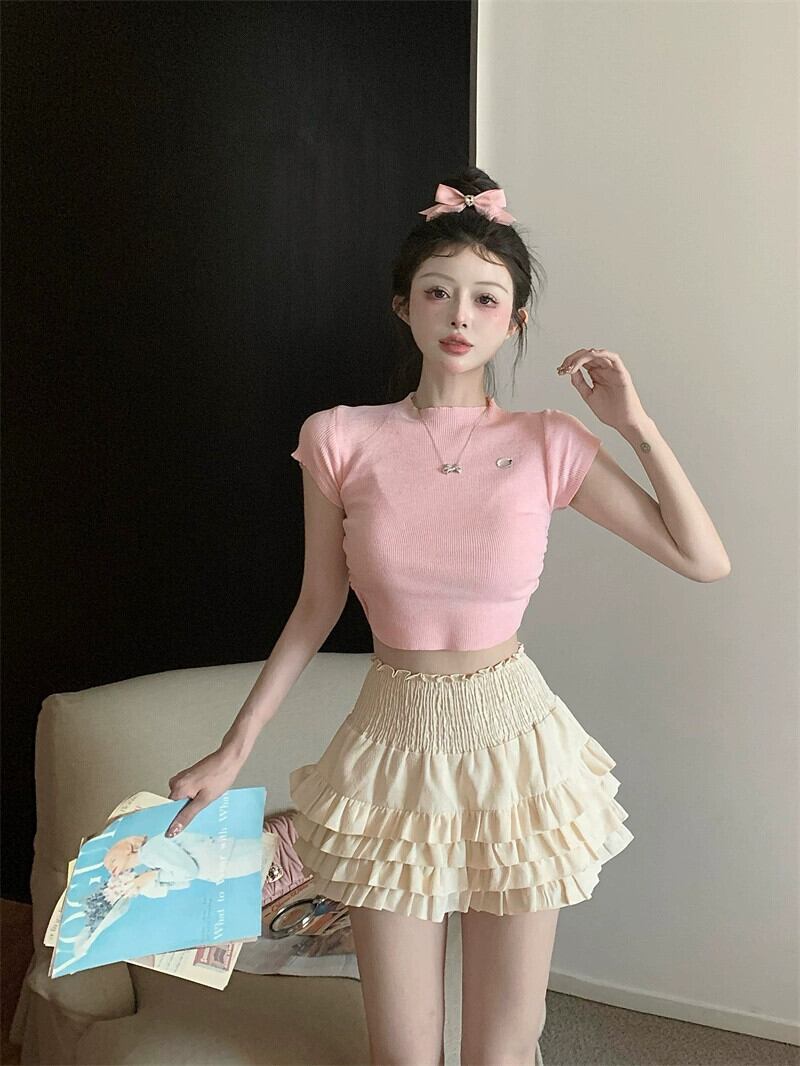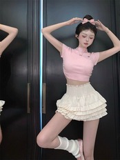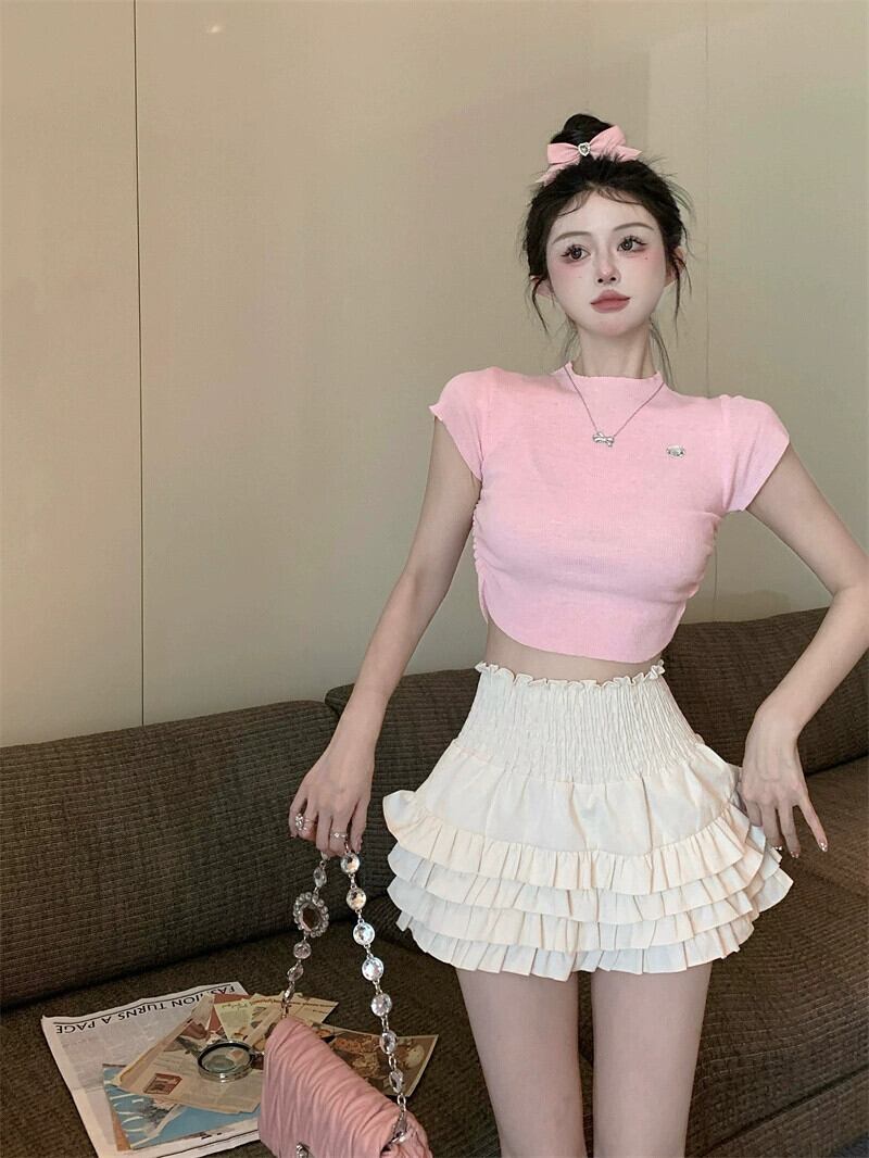 アプリコットフリルケーキスカートの女性の夏 2024 新スタイルハイウエスト A ラインキュロット小人ふくらはぎスカート サマー 夏物 Aライン berry22851717651 | beaute25