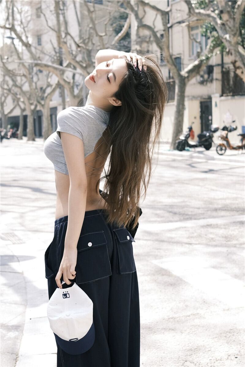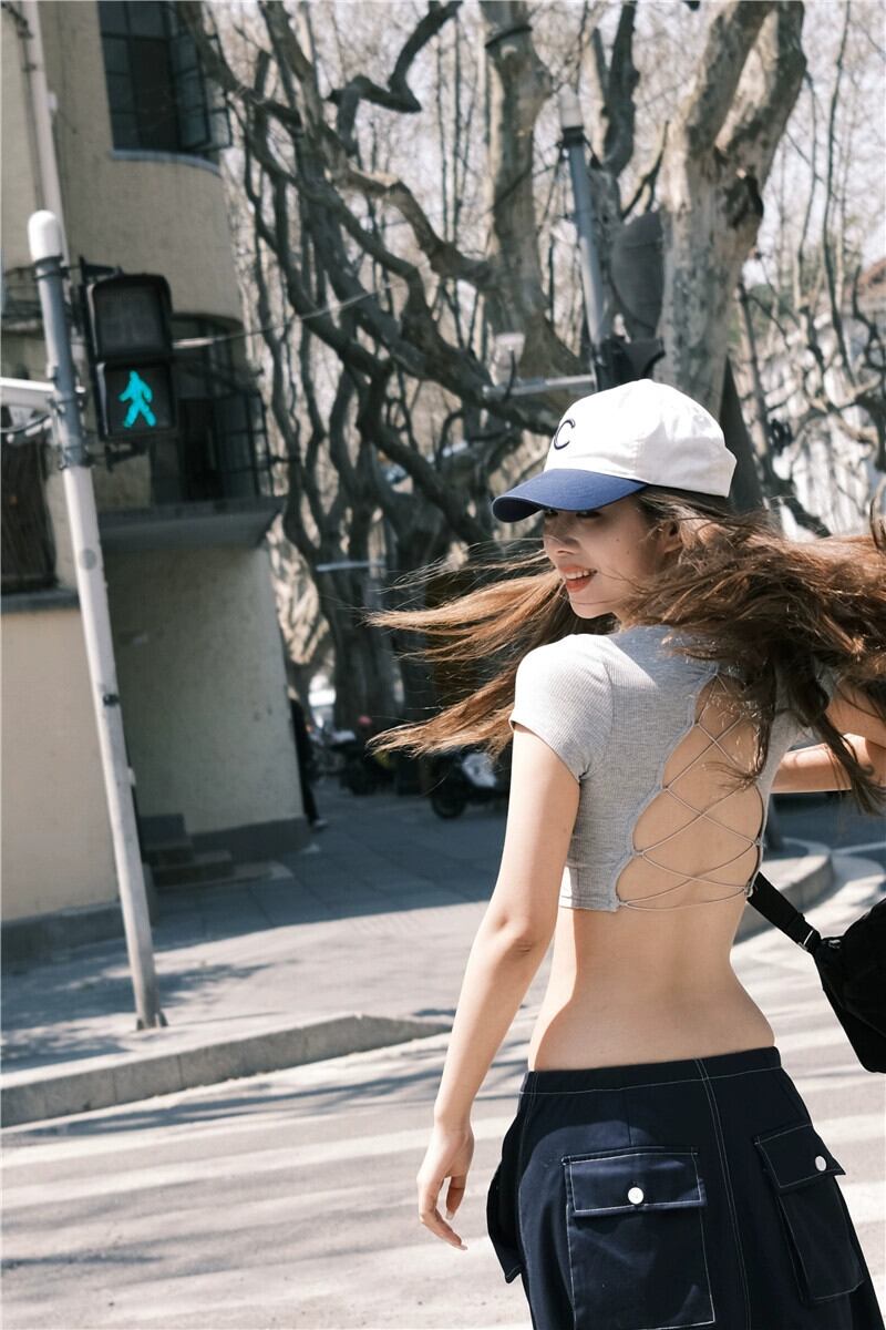 色:グレーバックレスTシャツ