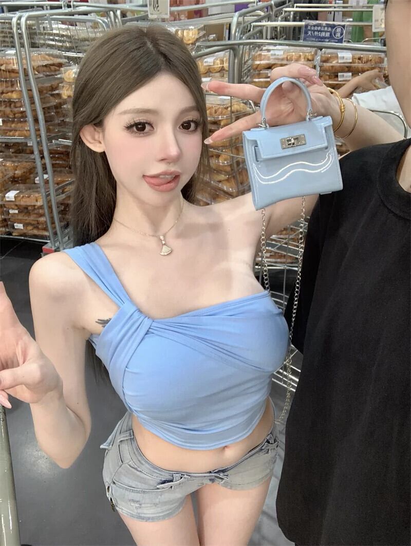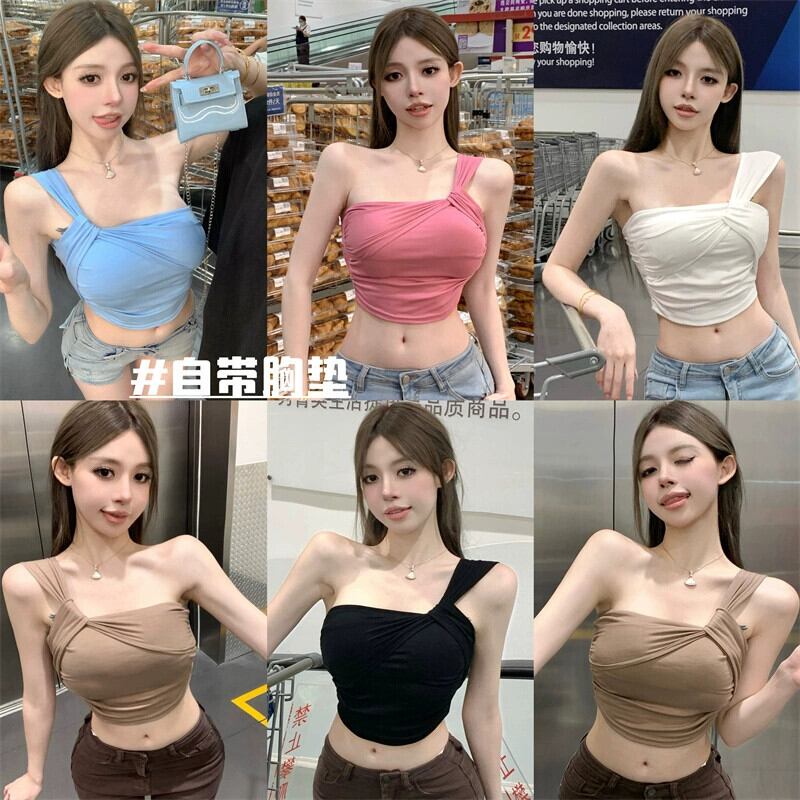 甘いワンショルダーキャミソール女性の夏の純粋な欲望スタイルプリーツ鎖骨セクシーなインナーウェアショートトップ 大人ガーリー スウィート キュート カジュアル サマー 夏物 ピュア berry83574816640 | beaute25