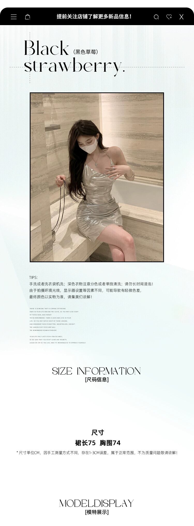 純粋な欲望スタイル v ネックホルタードレス女性の夏のチェーンプリーツ気質ハイエンドウエストバックレススカートショートスカート サマー 夏物 Vネック berry79528077745 | beaute25