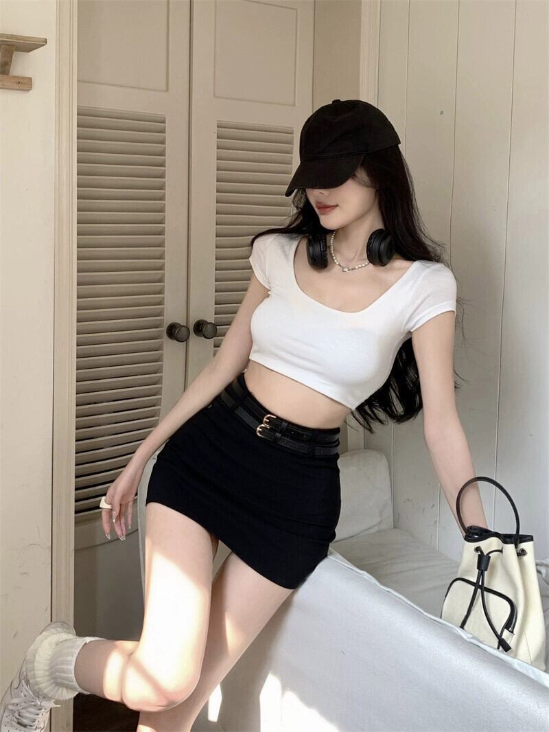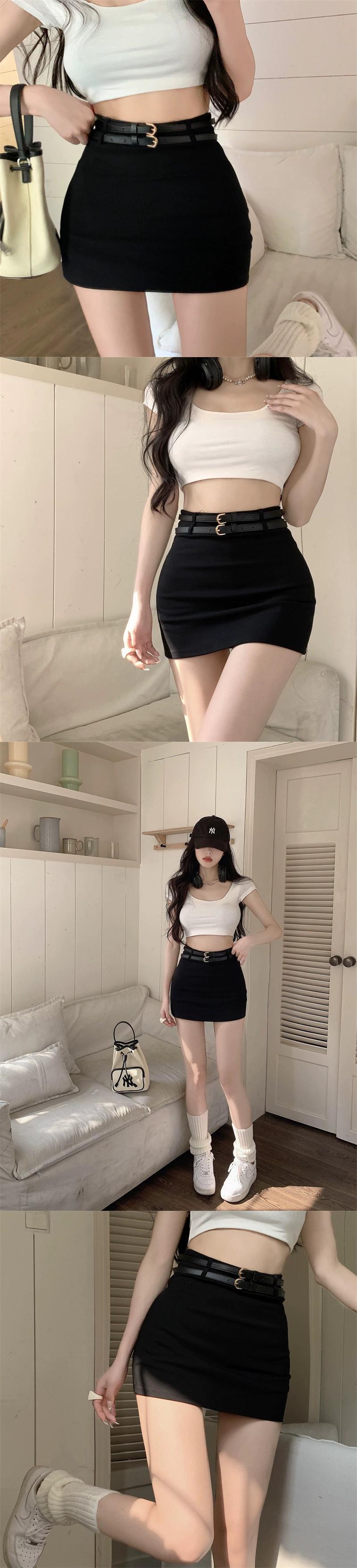 ホットガール黒スカート女性の夏のダブルベルトスカートセクシーな A ラインスカートタイトウエストヒップスカート ブラック サマー 夏物 ハーネス Aライン berry68348918657 | beaute25