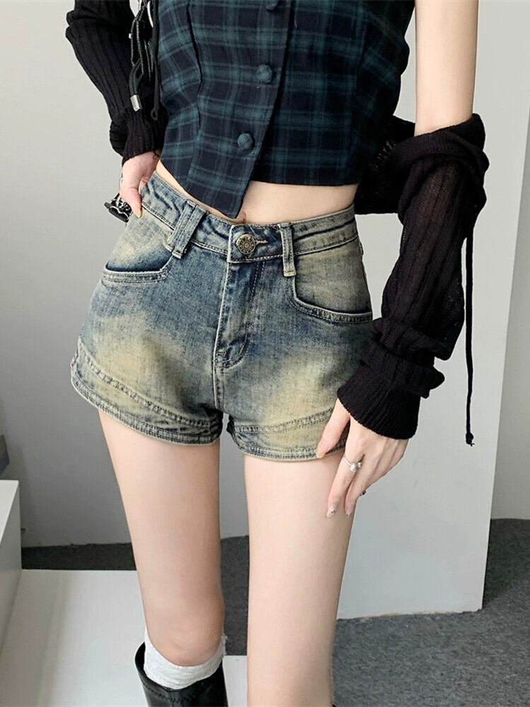 ダメージ加工レトロジーンズレディース夏アメリカンパンツワイドレッグスーパーショートパンツハイウエストストレートAラインパンツ サマー 夏物 ショーツ ブルマー berry72359840218 | beaute25