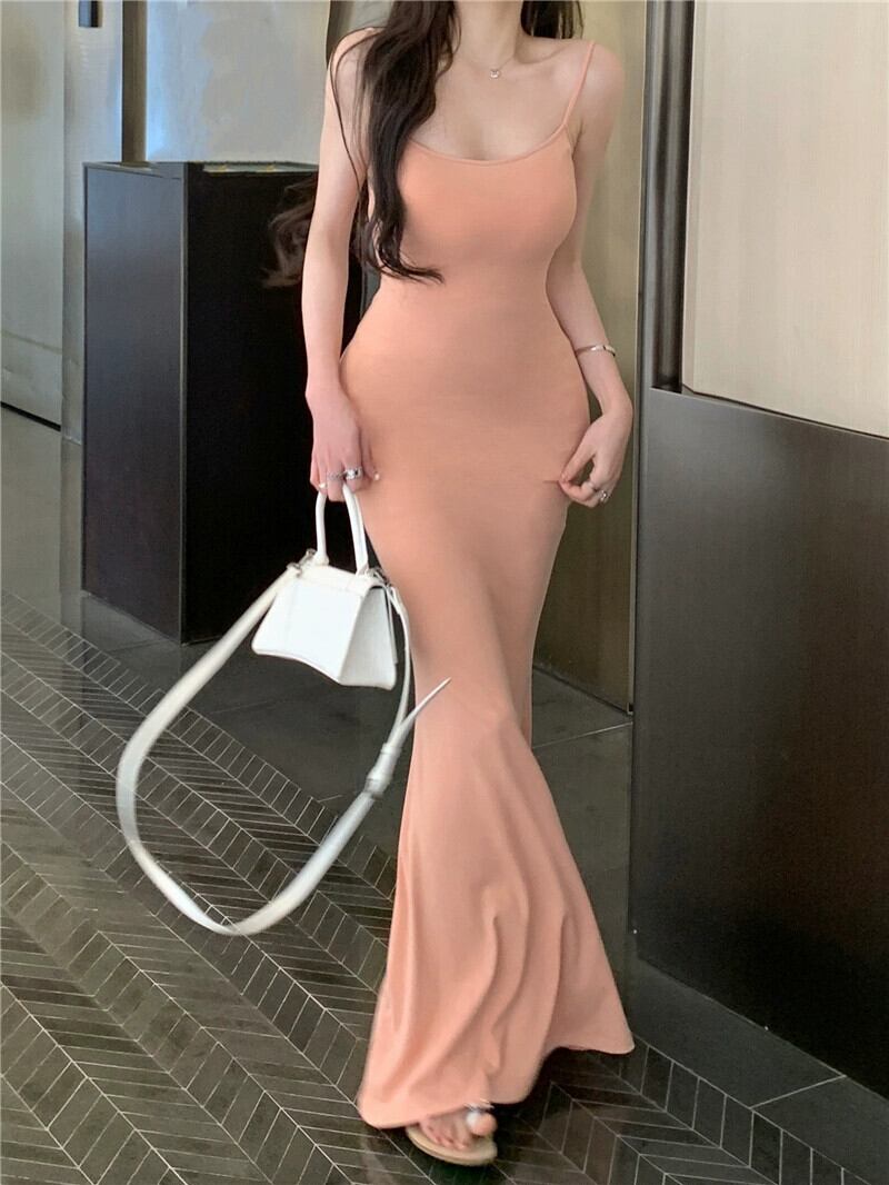 夏の純粋な欲望サスペンダードレス女性、スリムでタイト、セクシーな小さなママスカート、ヒップカバーロングスカート、体型を示すフィッシュテールスカート サマー 夏物 berry58831346507 | beaute25