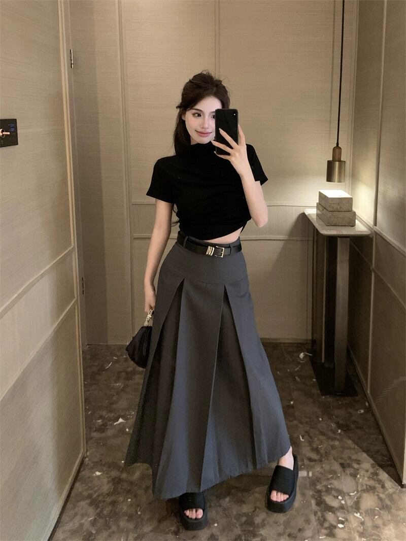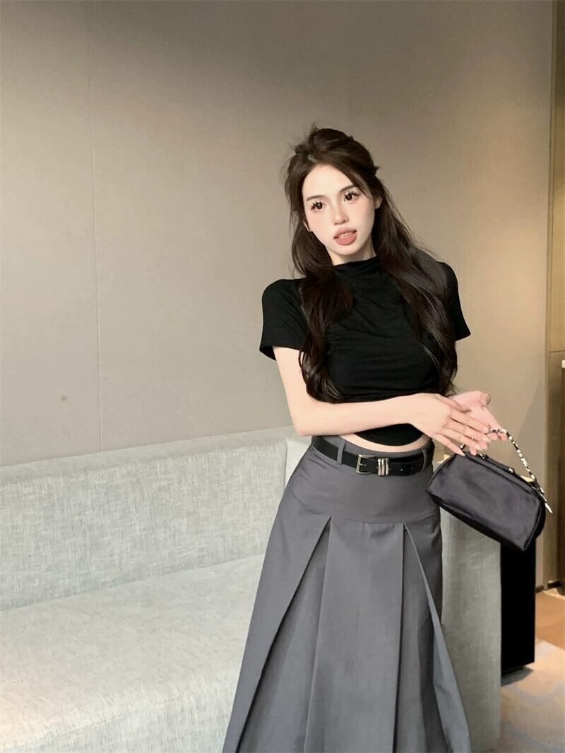 グレースーツプリーツスカート女性春 2024 新しいハイウエスト a ラインスカートカレッジスタイルミッドレングス傘スカート スプリング 春物 Aライン berry55611435564 | beaute25