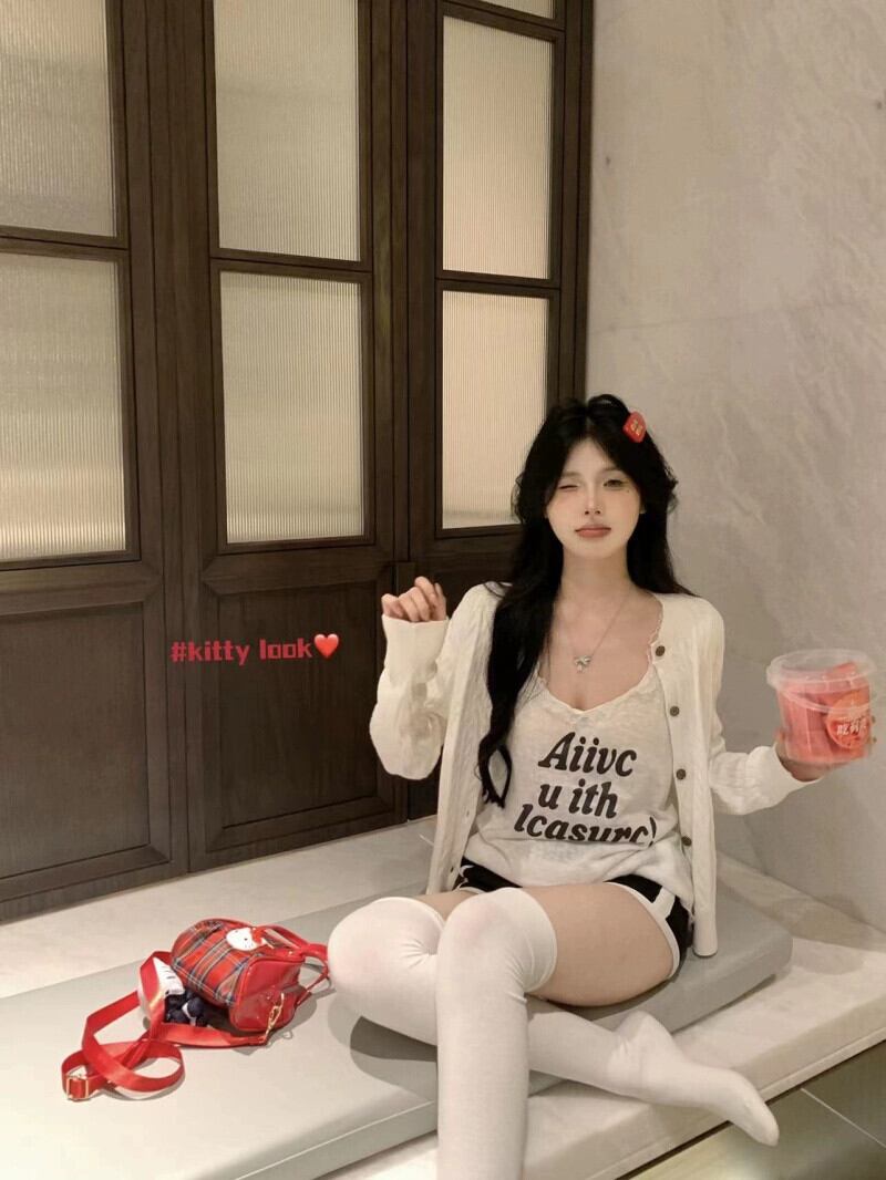 色:レースベスト,スポーツショーツ,ツイストセーター