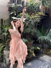 純粋な欲望シフォンサスペンダードレス女性の夏のショートスカートピンク優しい風甘い気質不規則な A ラインスカート 大人ガーリー スウィート キュート カジュアル サマー 夏物 Aライン berry9849746763 | beaute25