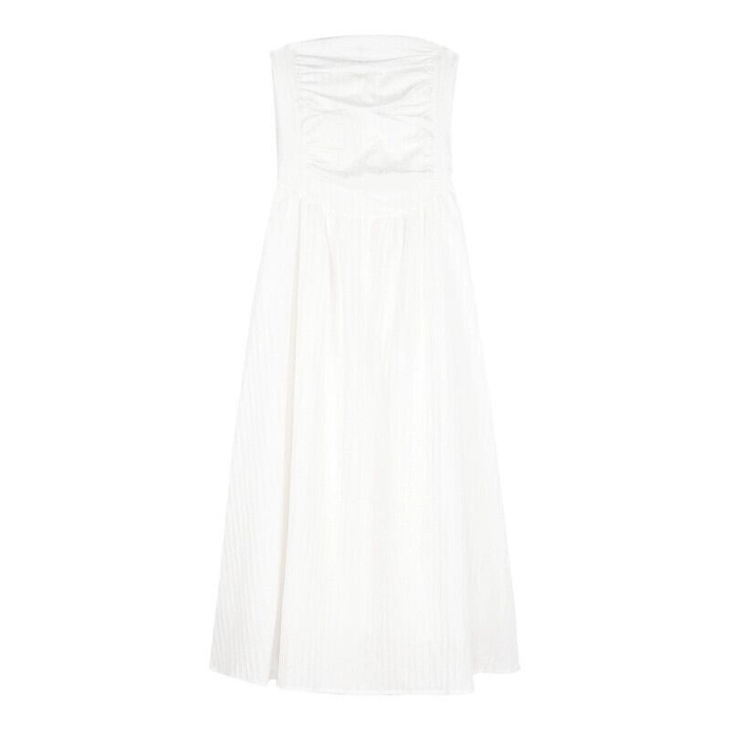 白いフレンチワンショルダーチューブトップドレス、妖精の夏の純粋な欲望のスカート、ウエストを締める気質、ノースリーブのミドル丈スカート ホワイト サマー 夏物 ピュア berry14424701852 | beaute25
