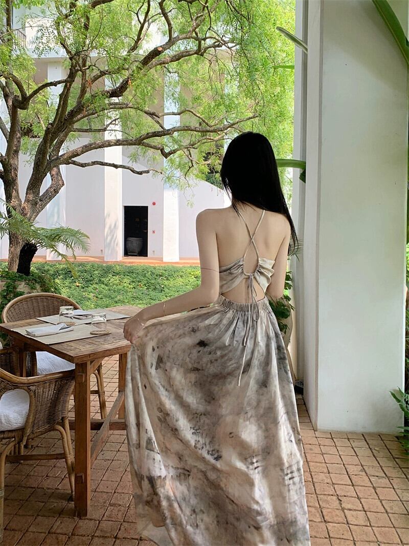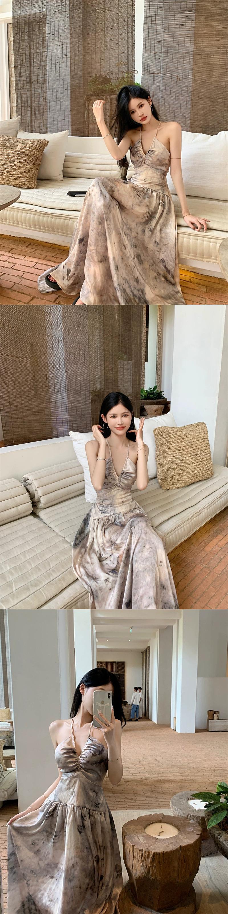 甘い花柄サスペンダードレス妖精サマースカート海辺休暇背中の開いたセクシーな気質ウエストロングスカート 大人ガーリー スウィート キュート カジュアル 夏物 berry82031260360 | beaute25