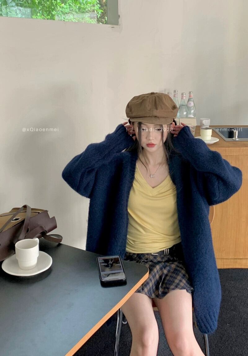 ゆったりとした怠惰なスタイルのニットカーディガン女性は外側に着用でき、秋と冬の長袖シックで柔らかくワックスのようなブルーのセータージャケットトップです。 ロング オータム 秋物 ウィンター 冬物 berry13840913658 | beaute25