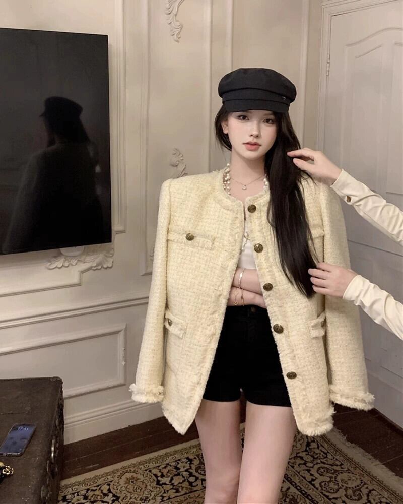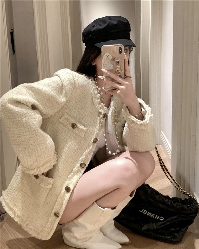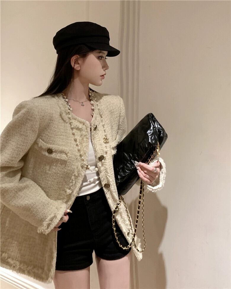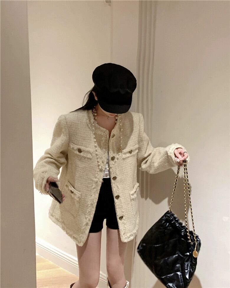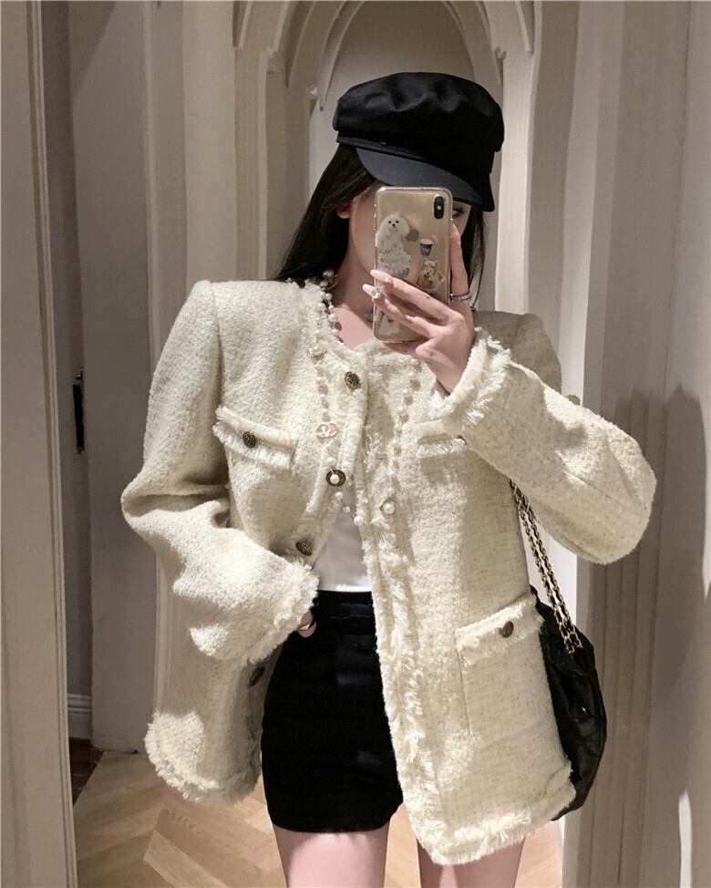 Xiaoxiang スタイルの女性のレトロな長袖織ジャケット女性の春のハイエンドアウターウェアルーズミッドレングストップ ロング スプリング 春物 berry2086328073 | beaute25