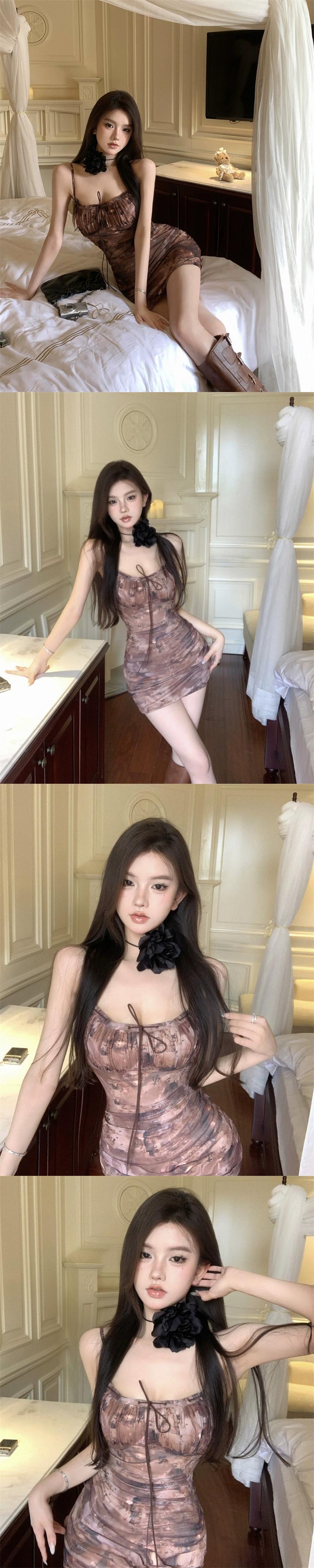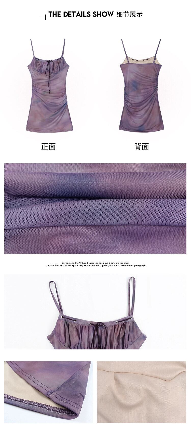 セクシーな絞り染めサスペンダードレス女性の夏のメッシュウエストタイトな純粋な欲望の紫のお尻を覆うショートスカート サマー 夏物 ピュア パープル berry45696681768 | beaute25