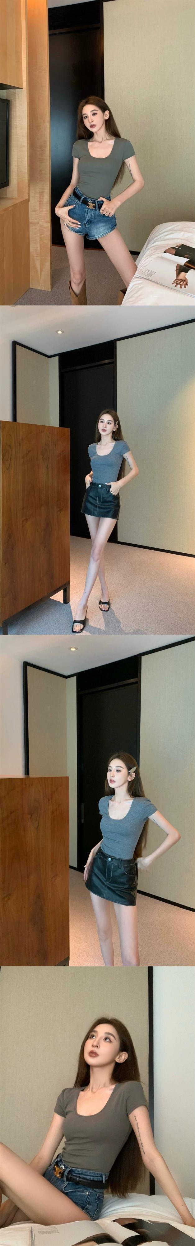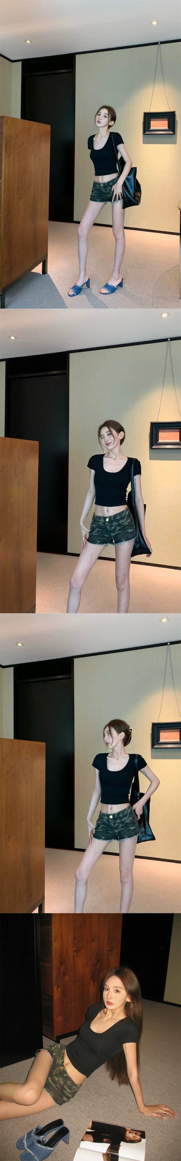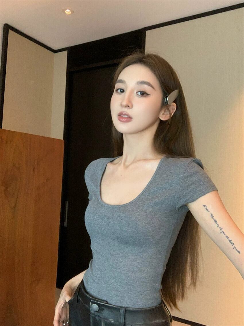アメリカンレトロショートスリムブラック Tシャツ女性の夏の純粋な欲望甘いホットガール U ネック半袖セクシーな鎖骨トップ ハーフスリーブ 大人ガーリー スウィート キュート カジュアル サマー 夏物 ピュア berry4459316164 | beaute25