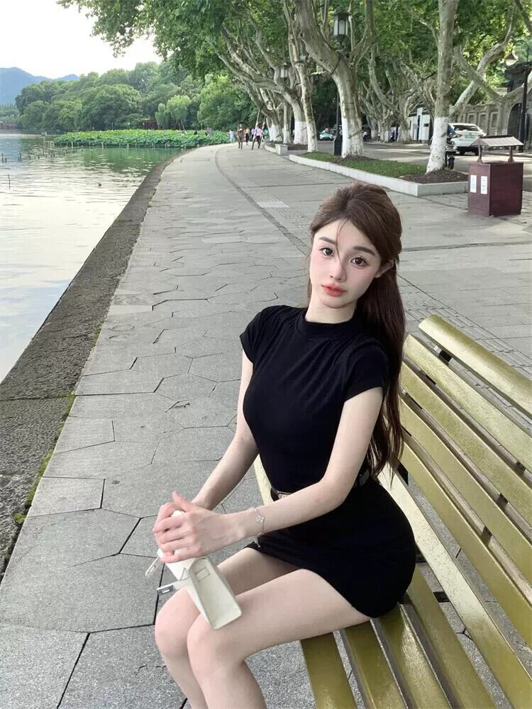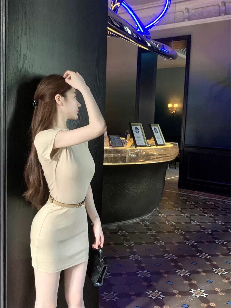 黒半袖 T シャツドレス女性の夏スリムフィットヒップハグショートスカートハーフハイカラーベルトスカート ブラック サマー 夏物 ハーネス Tシャツ berry69871827951 | beaute25
