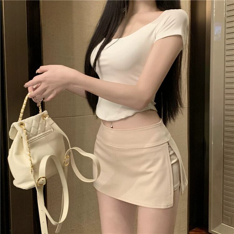 アメリカンブラックサイドスリットスカート女性の夏の露出防止キュロットスカートハイウエスト痩身 A ラインスカートショートスカート ハイウェスト サマー 夏物 Aライン berry4837564763 | beaute25