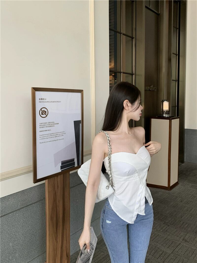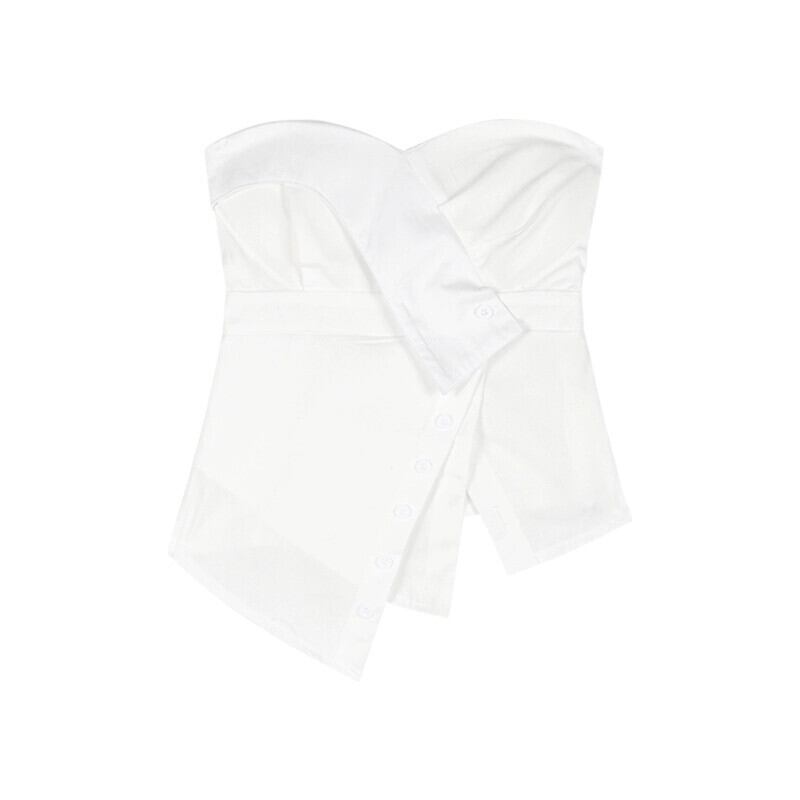 甘い白いチューブトップベスト女性夏純粋な欲求インナーウェア胸パッド付きワンショルダーショートトップ胸を包むために外側に着用 ホワイト 大人ガーリー スウィート キュート カジュアル サマー 夏物 ピュア berry26436816575 | beaute25
