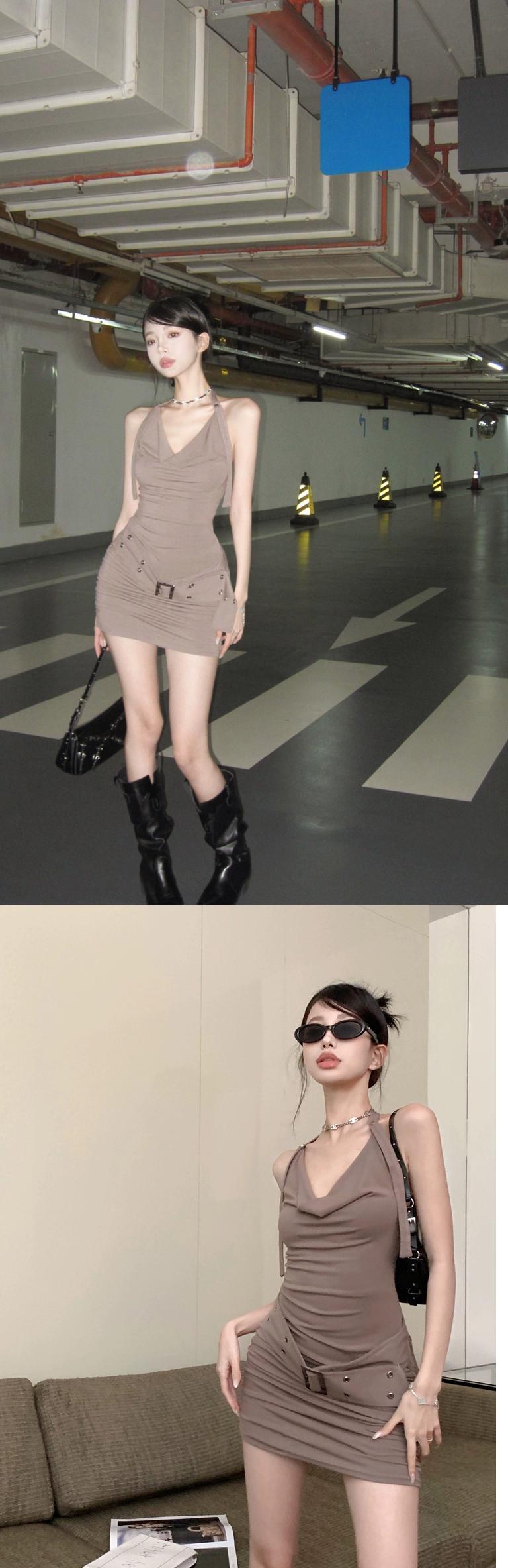 ホットセクシーなホルターネックサスペンダードレス女性の夏のウエストを締める純粋な欲望のお尻を覆うショートスカートフレンチスタイル痩身スカート サマー 夏物 ピュア berry83415406912 | beaute25