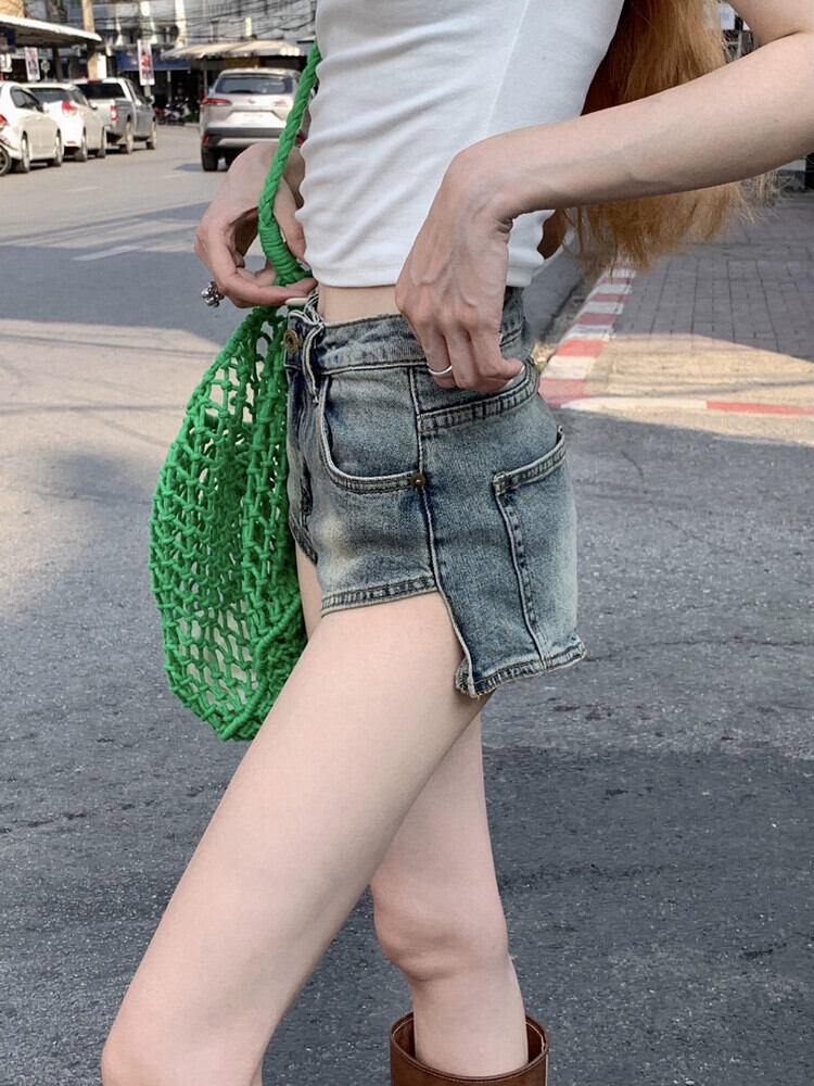 ホット不規則なレトロデニムショートパンツレディース夏ハイウエスト弾性スリットパンツ小さなAラインパンツパンツ エラスティック 伸縮 サマー 夏物 ショーツ ブルマー berry16874267303 | beaute25