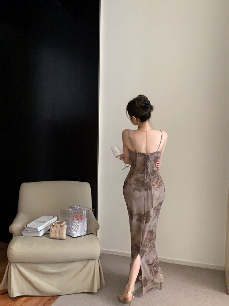 セクシーな絞り染めサスペンダードレスの女性の夏の 2024 新しいスリットヒップカバーロングスカート、見事な美しいフィッシュテールスカート サマー 夏物 berry36265674100 | beaute25