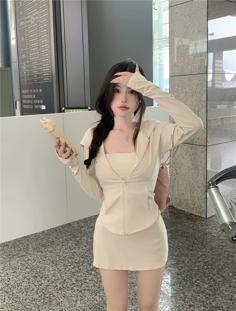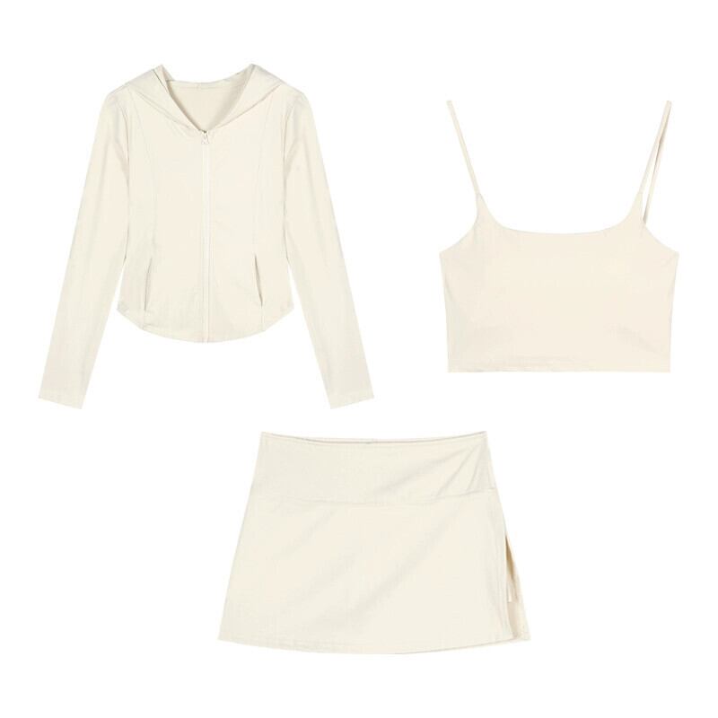 スポーツスーツ、黒日焼け防止コート、サスペンダーベルト、春先のヒップカバースカート、ショートスカート、3点セット ブラック スプリング 春物 ハーネス berry71860448676 | beaute25