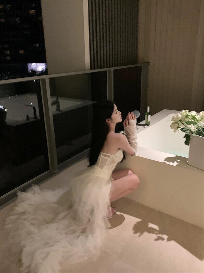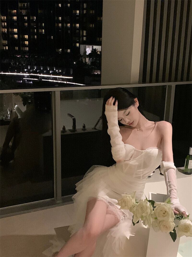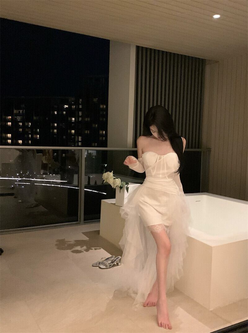 白いワンショルダーチューブトップドレス女性の夏のメッシュレーススカート背中の開いたハイエンドの気質ミッドレングススカート ホワイト サマー 夏物 berry44756134256 | beaute25