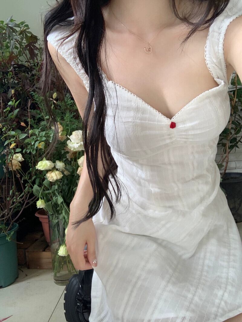 甘くてスパイシーな白い V ネックサスペンダードレスの女性の夏の純粋な欲望スカートセクシーなウエストと気質ノースリーブ A ラインスカート ホワイト 大人ガーリー スウィート キュート カジュアル サマー 夏物 Vネック Aライン ピュア berry77007135527 | beaute25