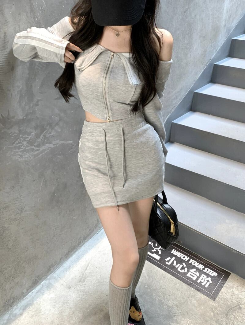 純粋な欲望ホットガールスポーツスーツ女性の秋と冬ワンショルダー長袖ショートグレースウェットシャツカバーヒップスカート 2 点セット ロング オータム 秋物 ウィンター 冬物 berry71797483109 | beaute25